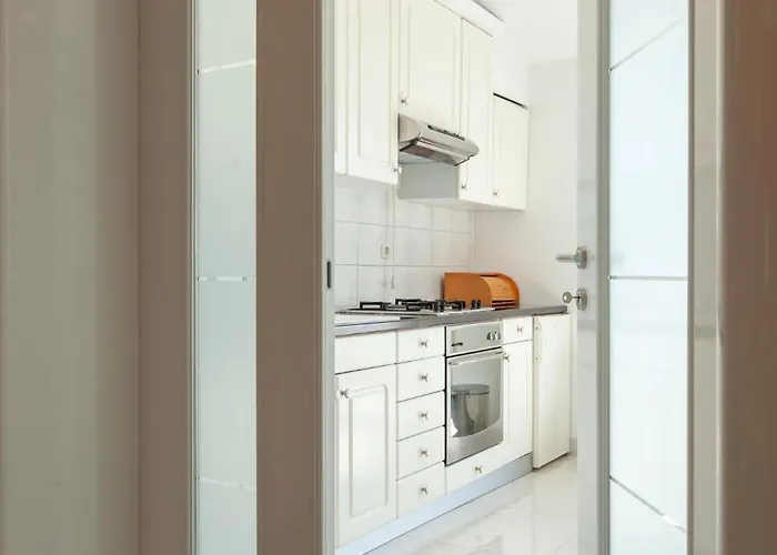 Dieses Apartment bietet seinen Gästen die Annehmlichkeiten von Selbstversorgern, wie eine komplette Küche und einen Essbereich.